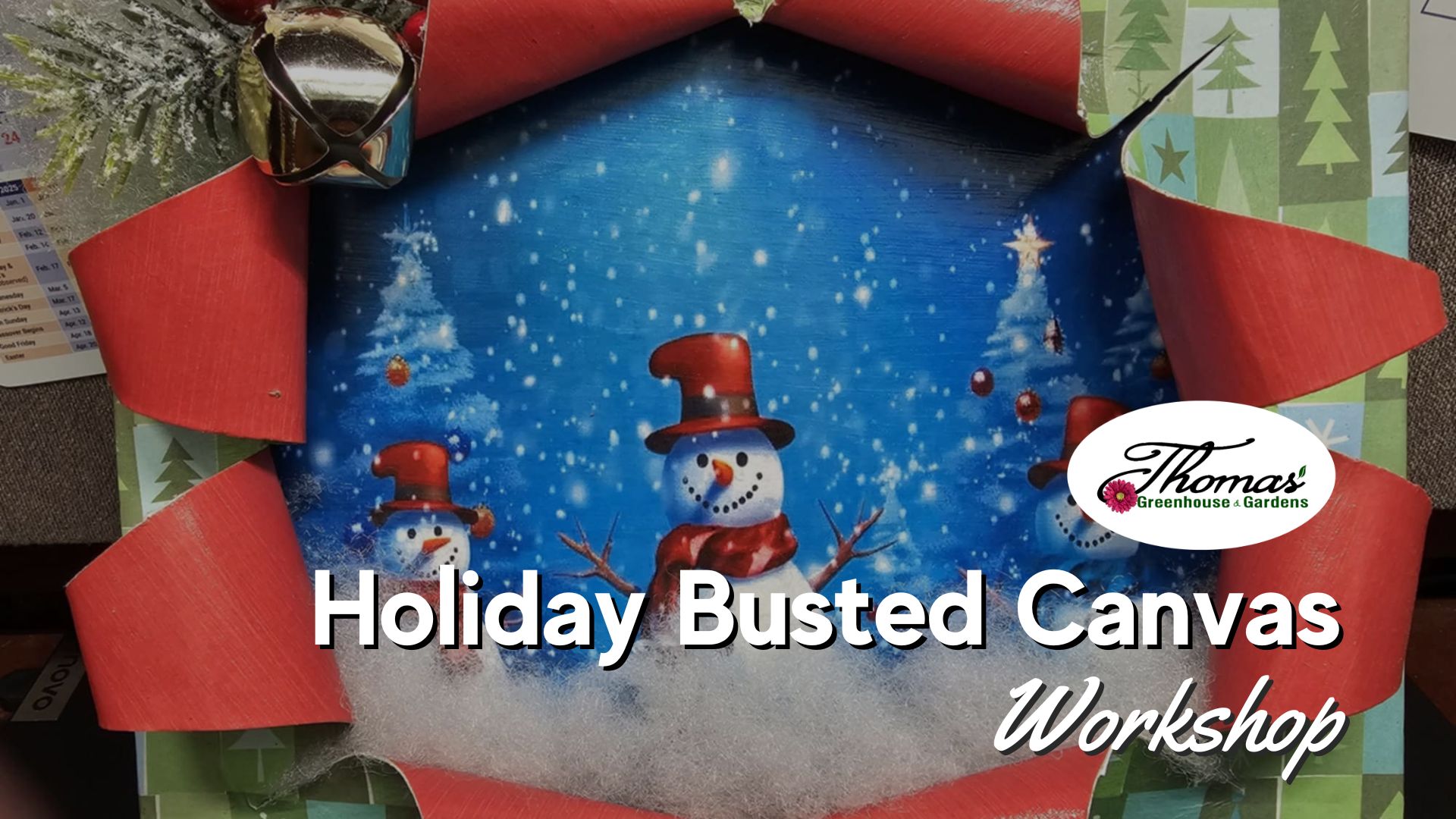 Holiday Busted Canvas Workshop is Cancelled We’re sorry to share that due to low enrollment, we’ve decided to cancel our